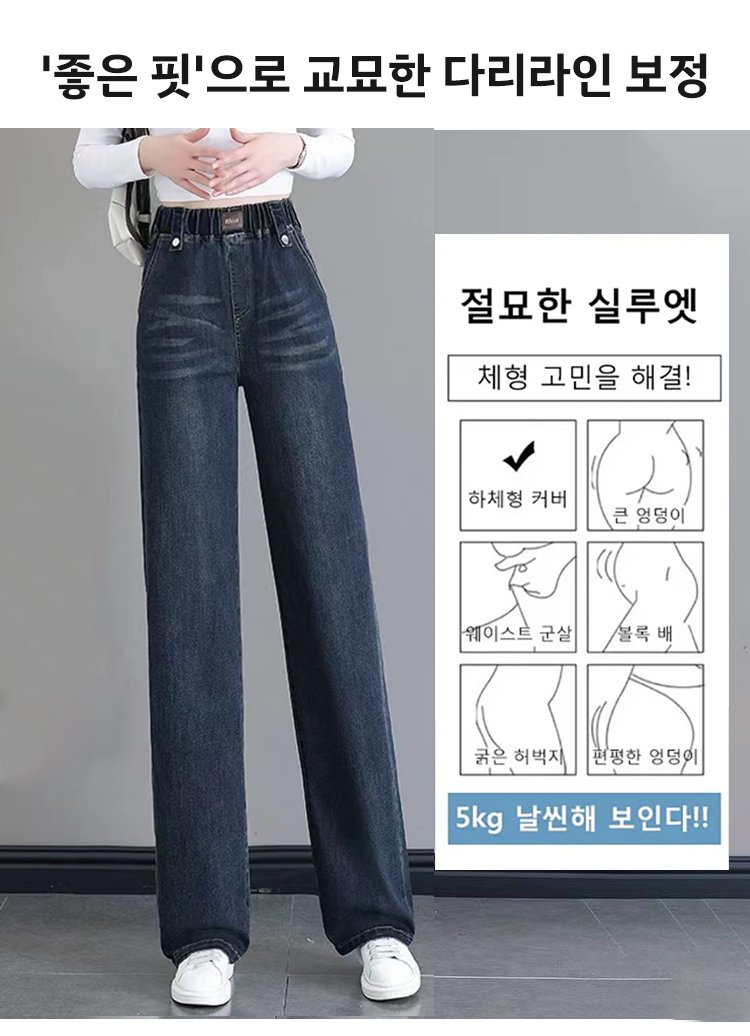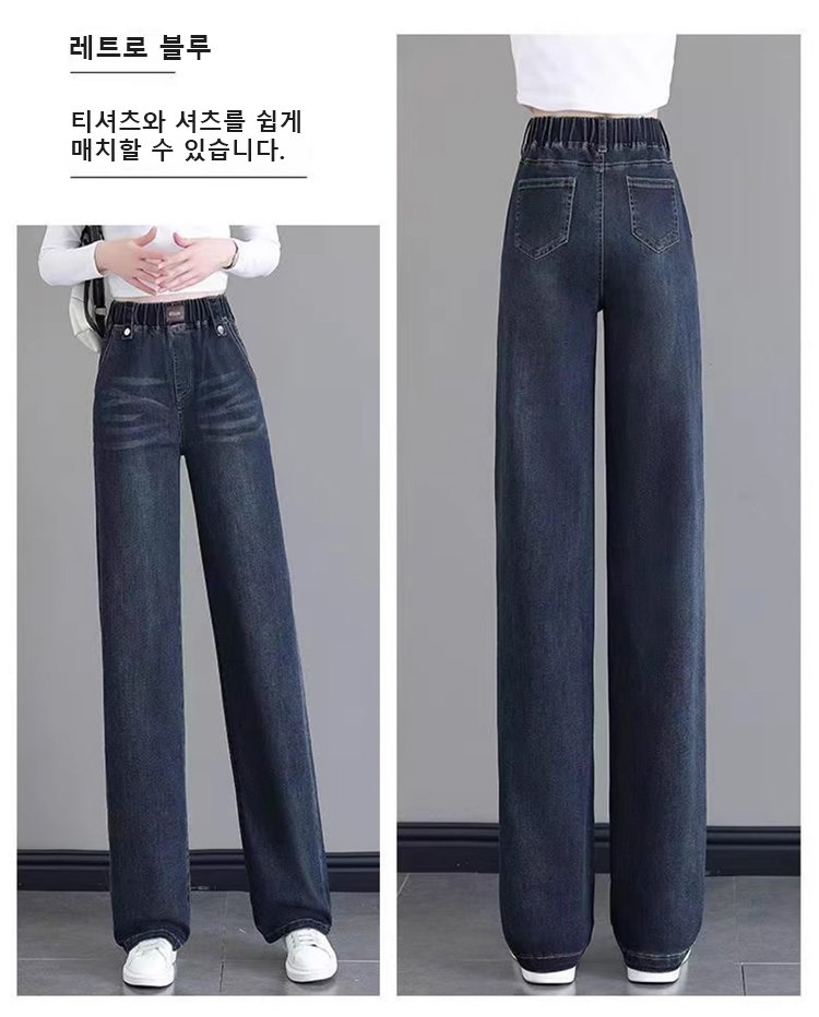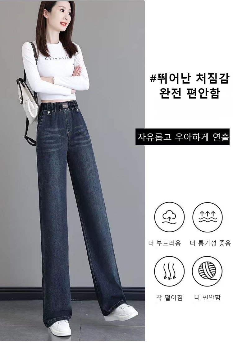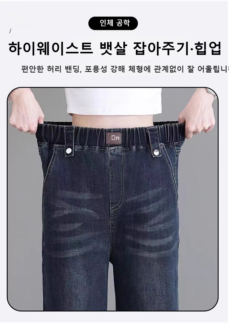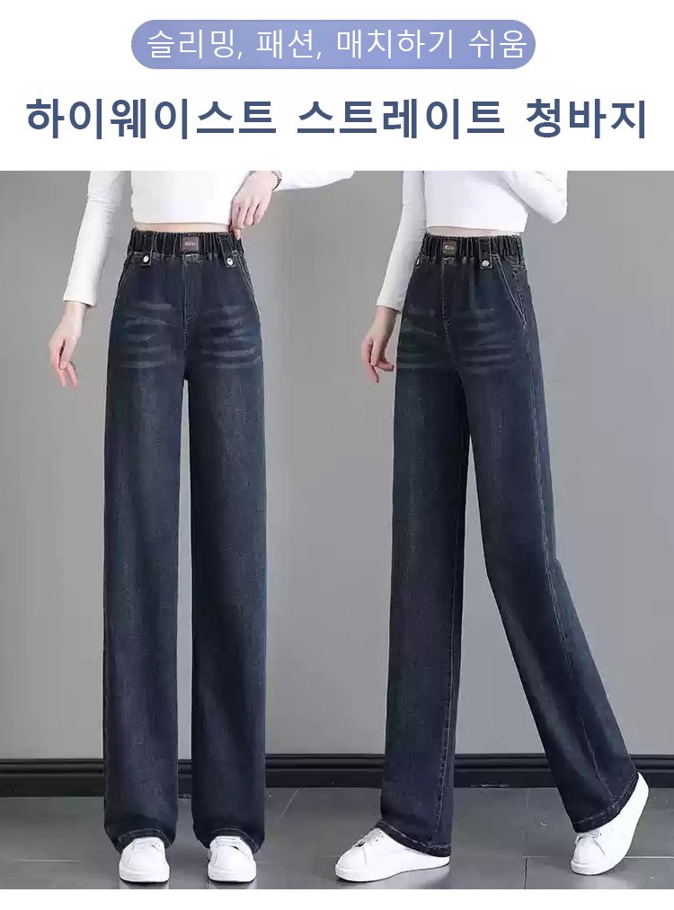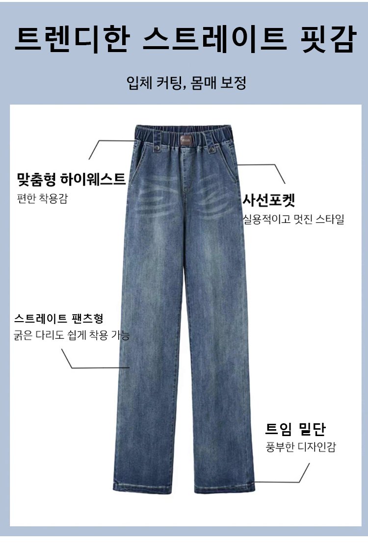 여성용 신축성하이웨이스트 스트레이트 청바지
