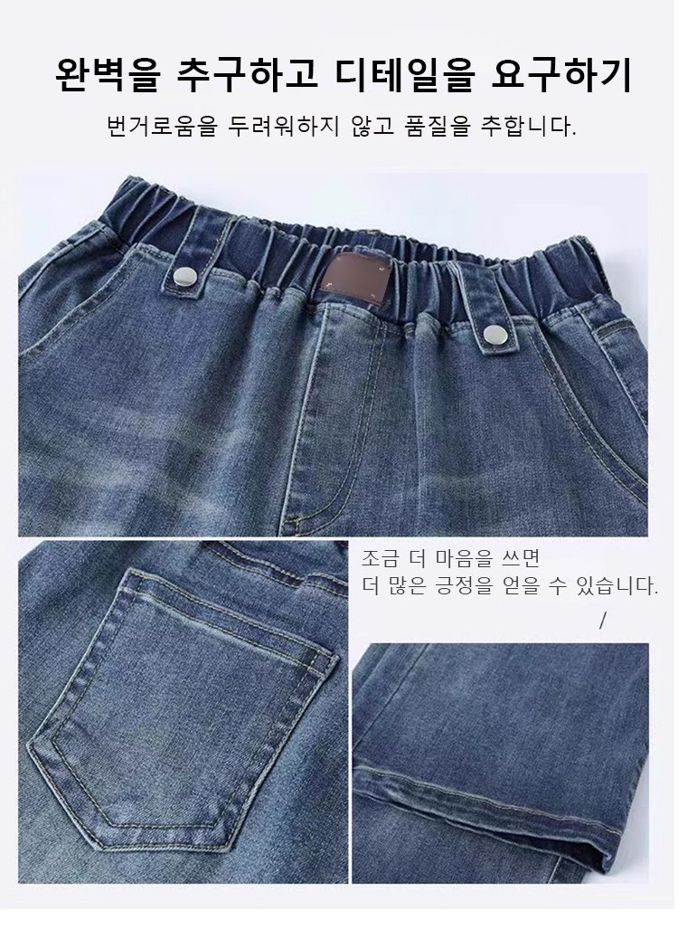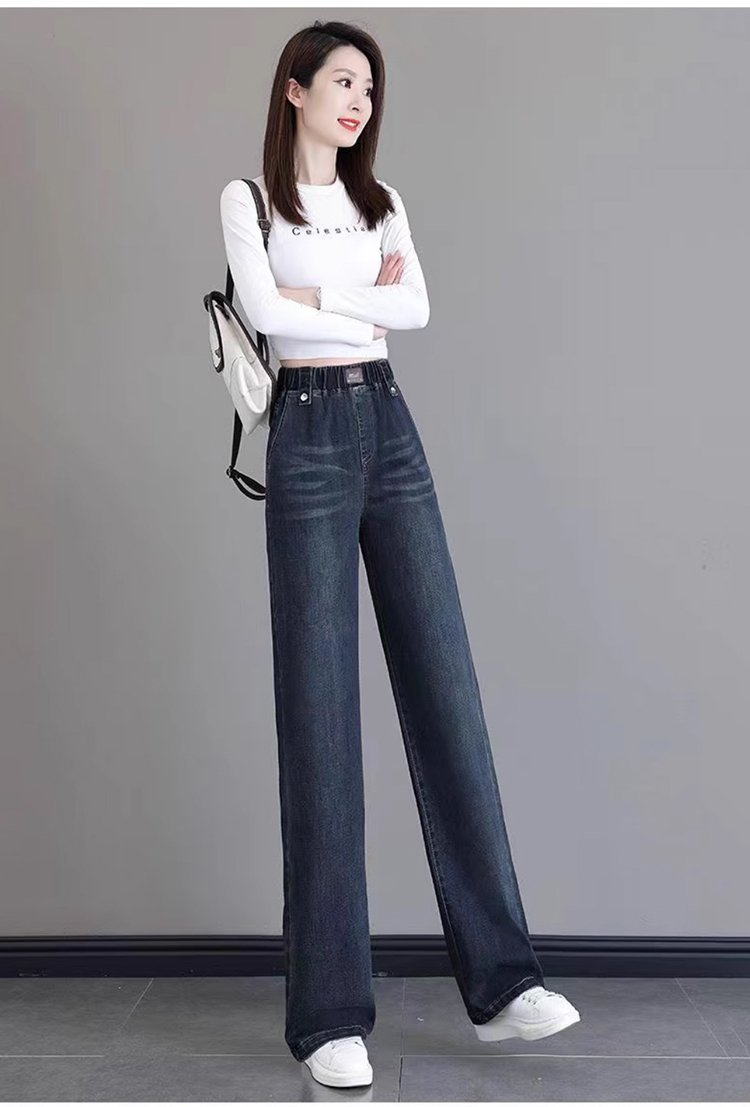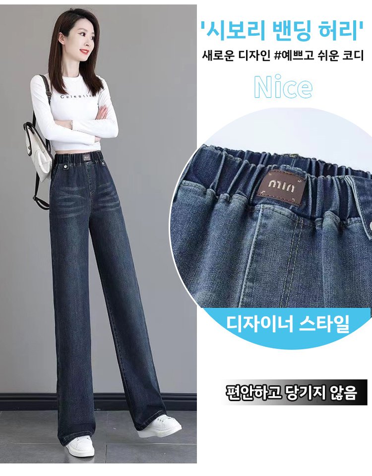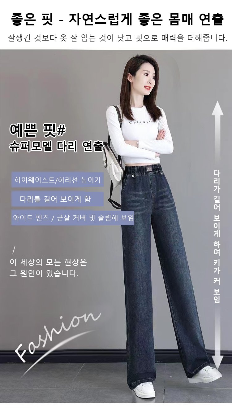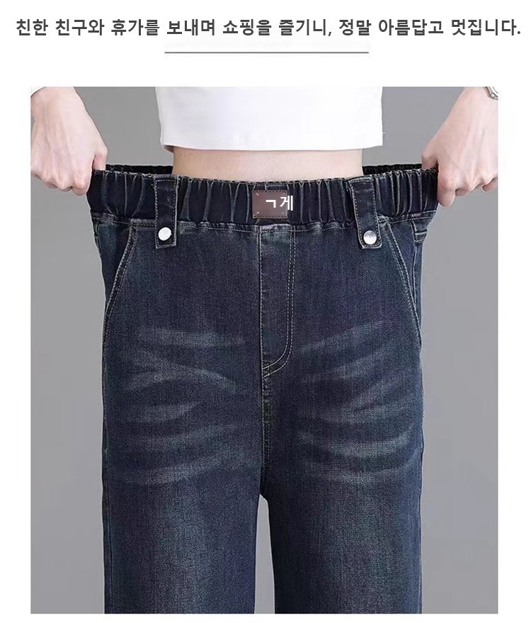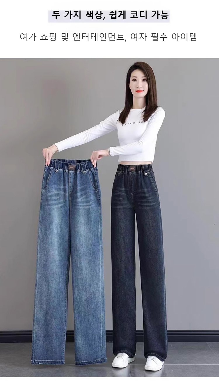 여성용 신축성하이웨이스트 스트레이트 청바지
