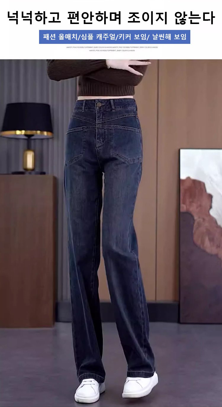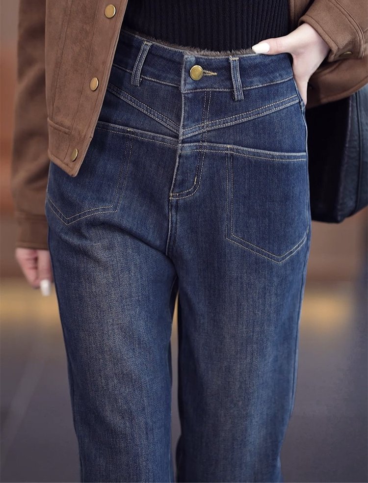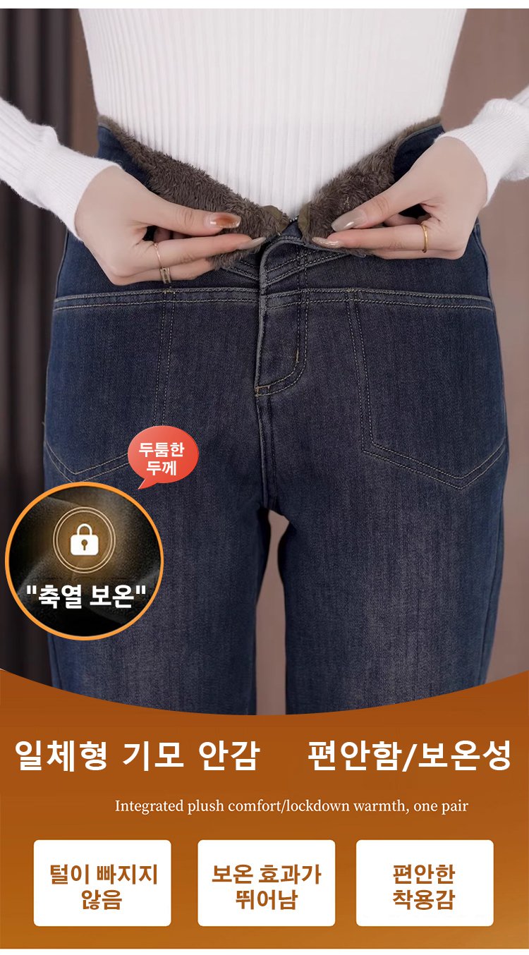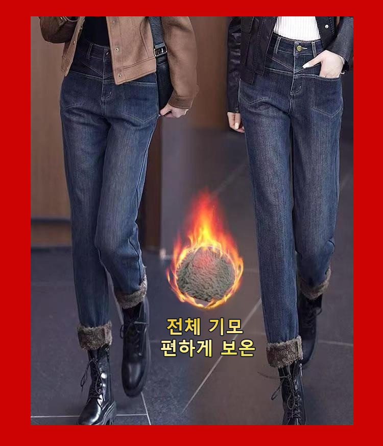 【전체 기모】여성 보온 기모 데님 팬츠