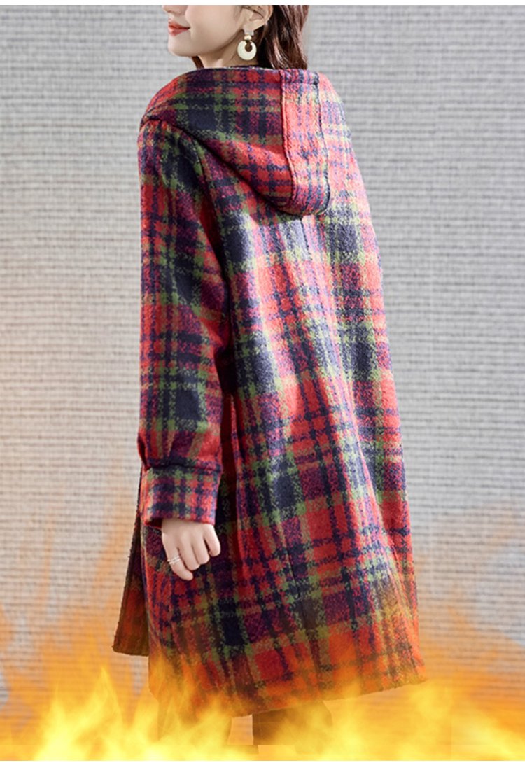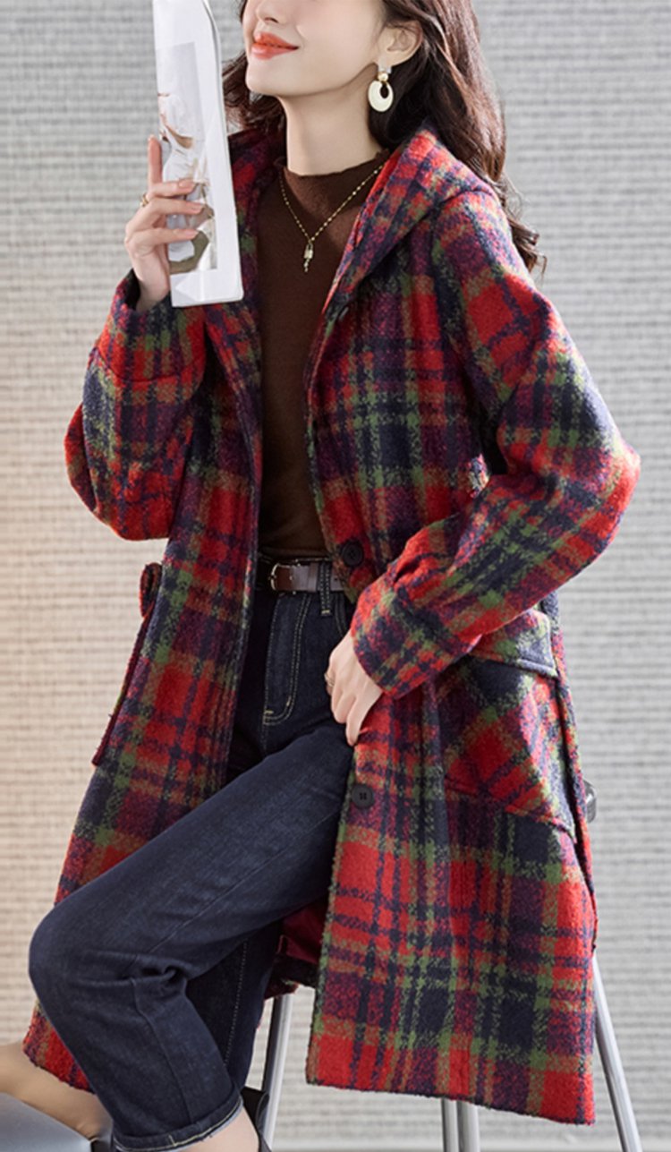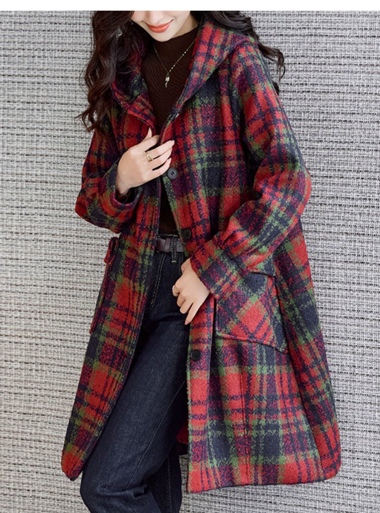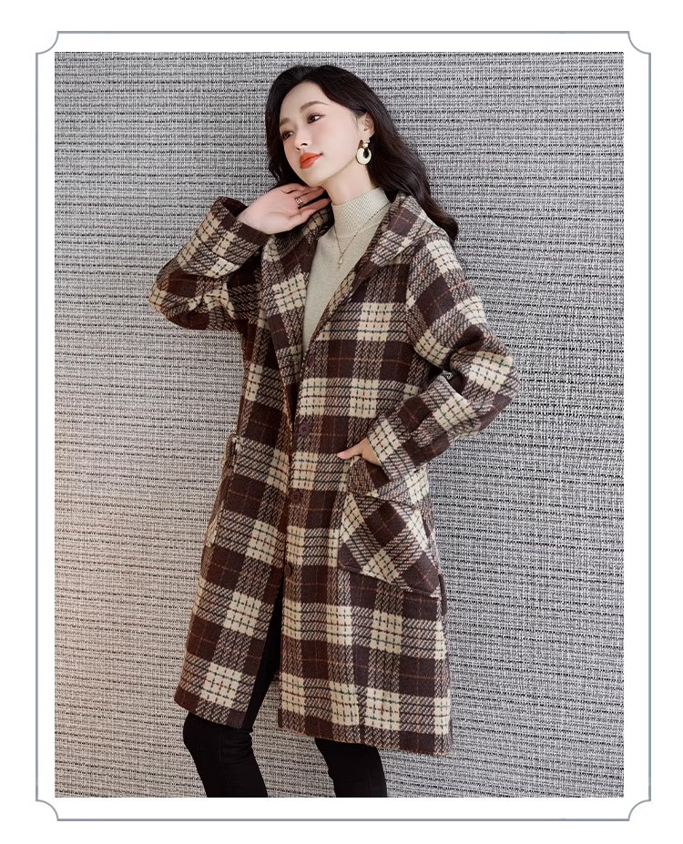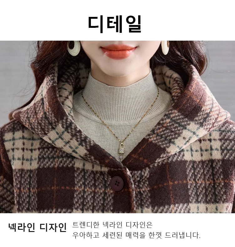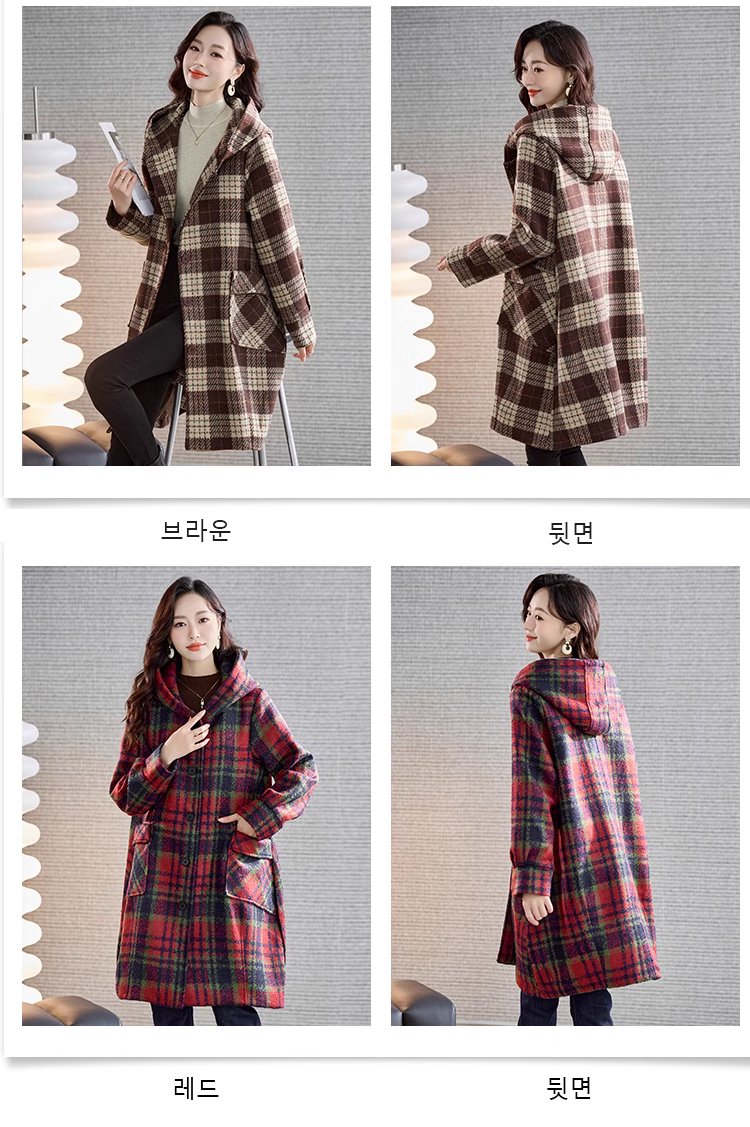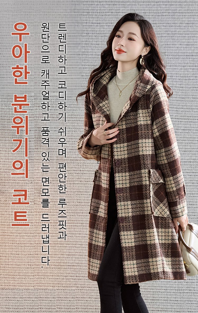 [날씬해 보임] 캐주얼 체크무늬 여성용 모직 코트